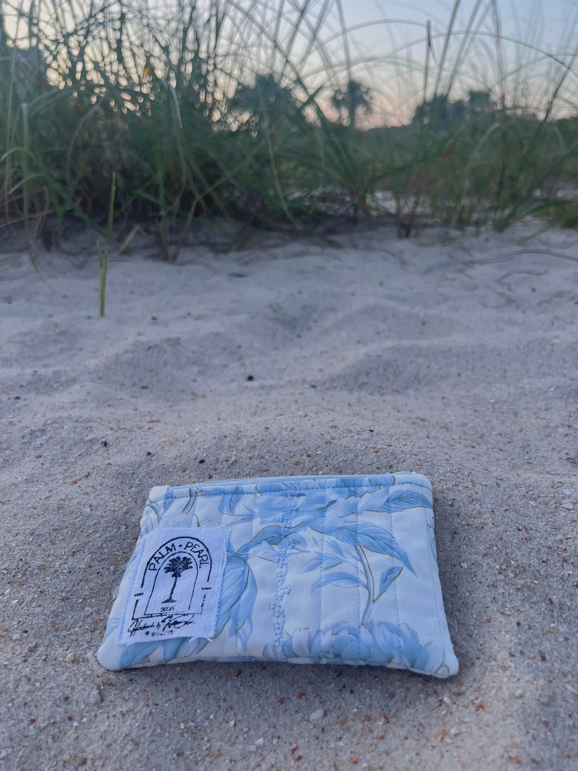 Romantic, coastal, and full of quiet charm—Golden Blue Bloom is where soft blue florals meet subtle golden accents for a look that feels like sunrise over the ocean. Each pouch is hand-quilted with care using dreamy, vintage-inspired fabric and finished with sweet boho touches.