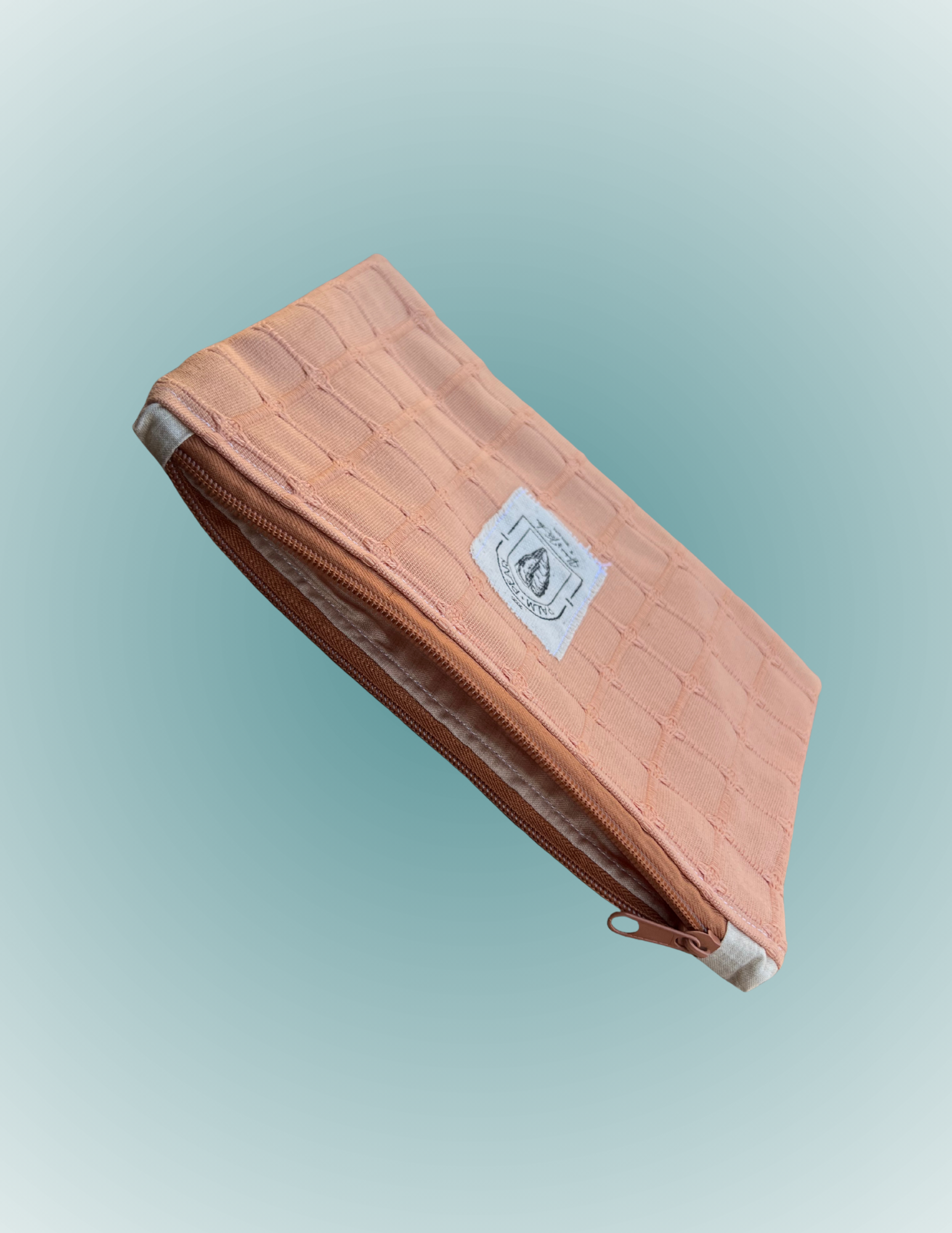 Inspired by the warm glow of a coastal sunset, this peachy-orange pouch features subtle square texture detailing that adds depth and elegance. Perfectly sized for sunglasses, small accessories, or everyday essentials, it’s a versatile addition to your seaside-inspired collection.