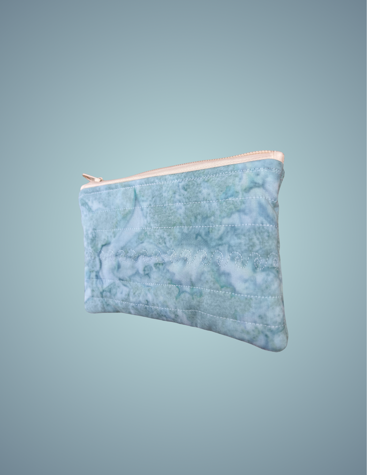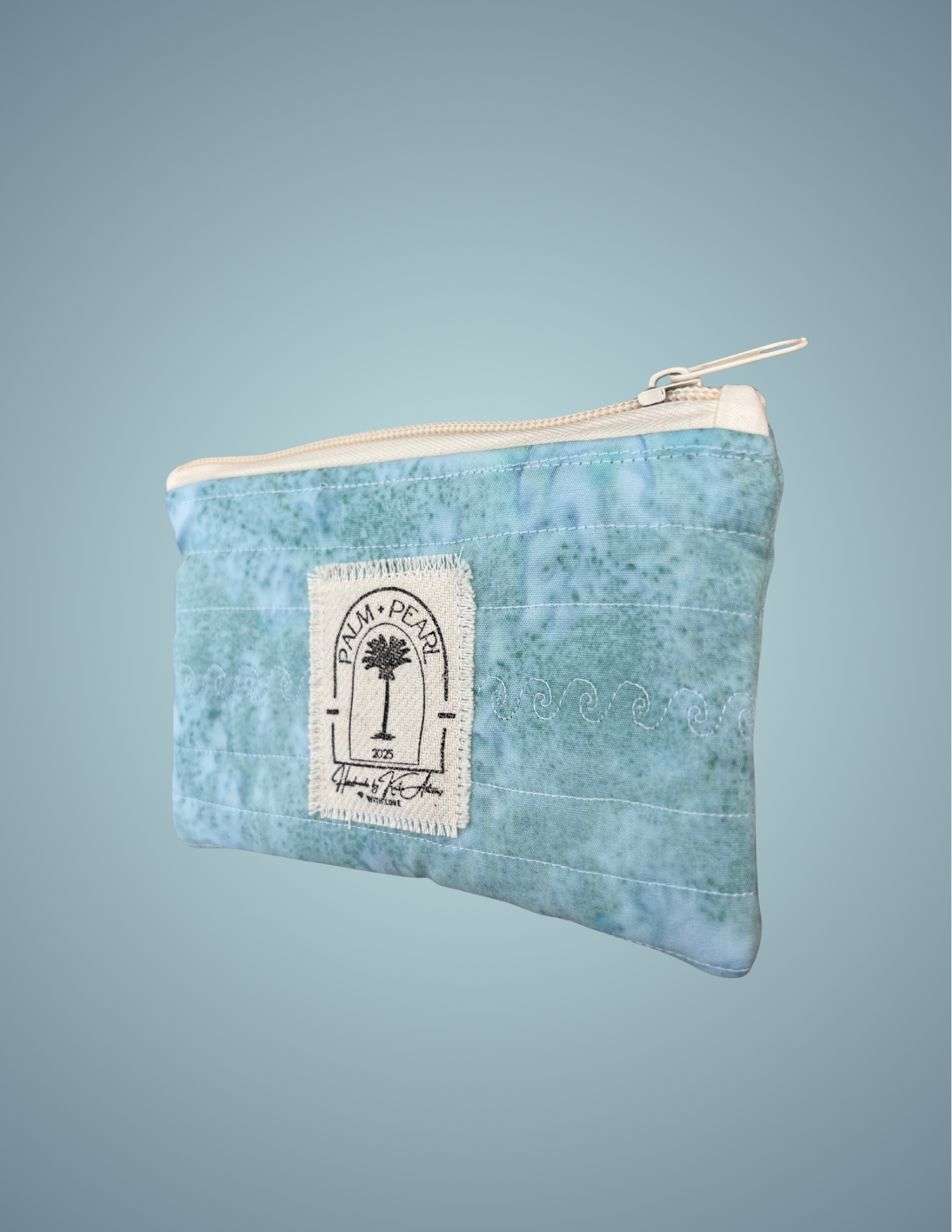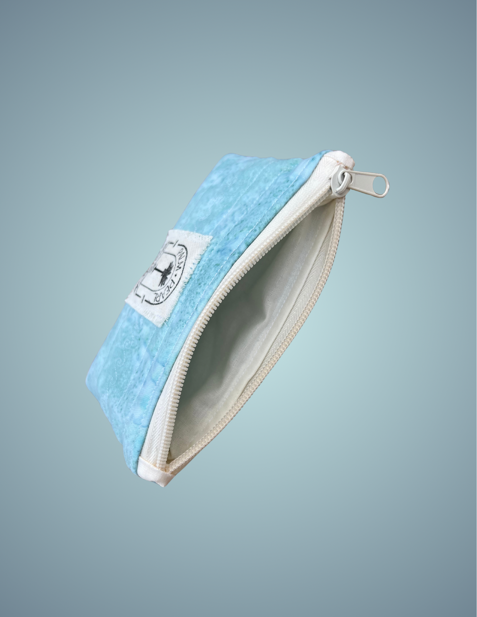 Handmade and one-of-a-kind, the Tidal Wash pouch is crafted from teal and blue watercolor batik cotton, evoking the calm movement of ocean tides. This small quilted zip pouch is ideal for stashing your everyday essentials—like lip balm, cash, or earbuds—while keeping them neat and secure. Compact and coastal-inspired, it’s the perfect little companion to slip into any bag.